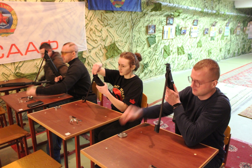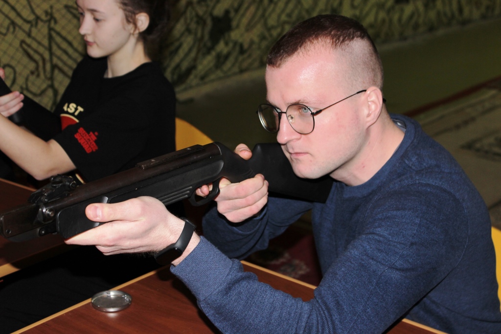 После посещения автошколы, ребята переместились в стрелковый тир Брестской ООС ДОСААФ, в котором состоялись соревнования по пулевой стрельбе посвященные 95-й годовщине образования ДОСААФ. В соревновании приняли участие тридцать восемь ребят разной возрастной категории. Со всеми было проведено инструкторско-методическое занятие по правилам стрельбы и мерам безопасности при выполнении упражнения. После все участники были разбиты на три категории и приступили к выполнению задания.