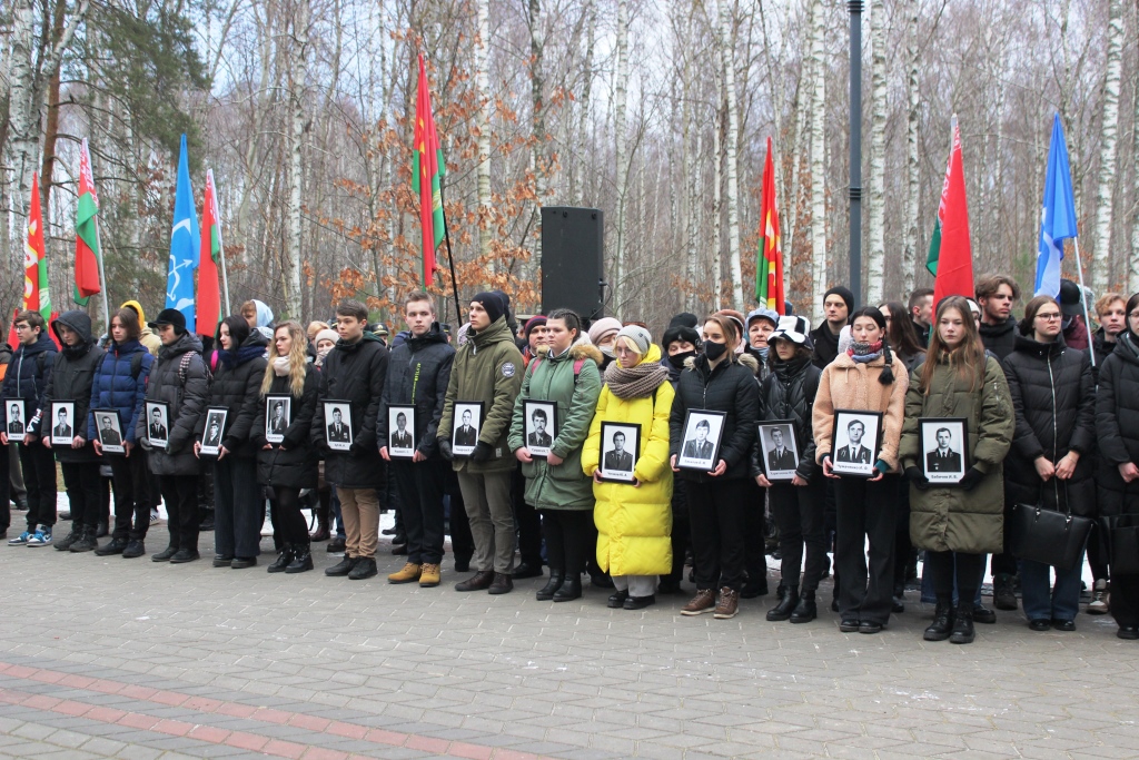 В мероприятии приняли участие первичные структуры учреждений образования города СШ № 13 имени В. Хована, СШ № 31 военно-патриотический класс пограничной службы, кадетский класс СШ № 35. Руководители организационных структур, возложили цветы к открывшемуся мемориалу.